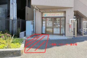 ※自転車・ベビーカーは赤の場所に停めてください。
